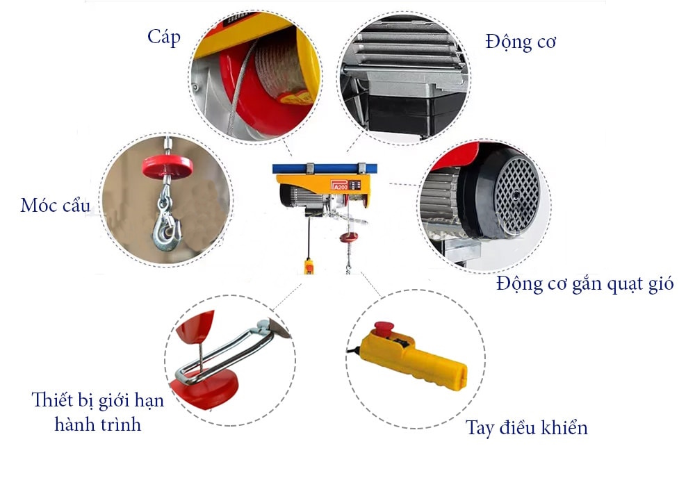 Công tắc giới hạn hành trình (limit switch) giúp bảo vệ máy khi nâng hoặc hạ hết tầm.